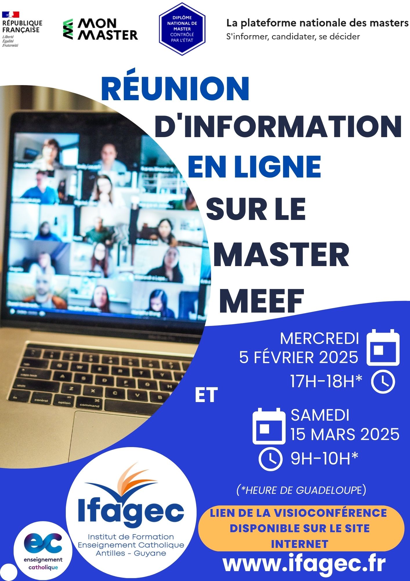 L'IFAGEC propose une réunion d'information en ligne dans laquelle on vous présentera l'organisation de notre master (les dates indiquées sont sous réserve de modification!)
